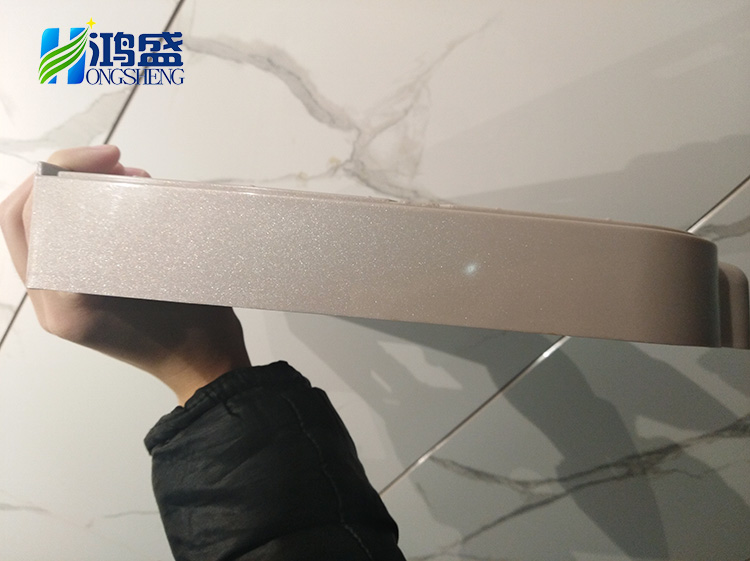 這款產品采用鴻盛新材編號為P60E608的免噴涂材料進行生產,這款材料顏色為琉璃金,從外觀看可以看出其外觀有種金屬質感。細節上看,側面是帶金屬感的高光閃點效果,頂部為了減少熔接痕對整體外觀的影響,刻意設計成拉絲紋路效果,很大程度上保持了美觀。