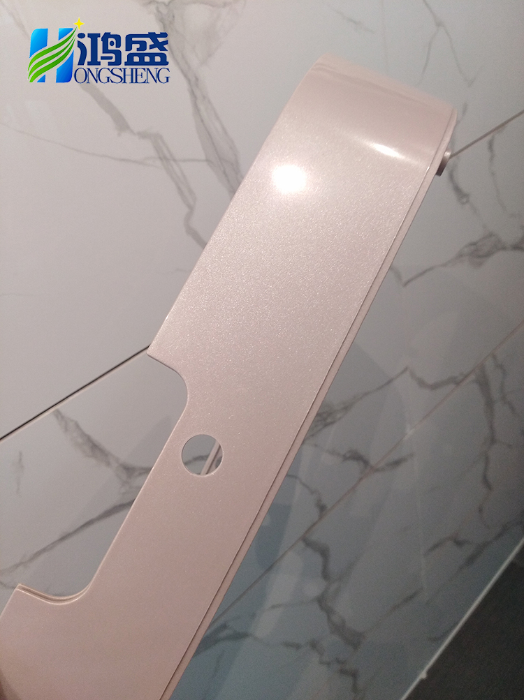 這款產品采用鴻盛新材編號為P60E608的免噴涂材料進行生產,顏色為琉璃金,從外觀看可以發現有種金屬質感。細節上看,孔洞處也幾乎控制到零流痕。