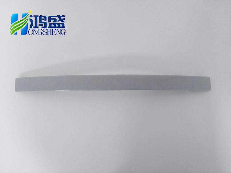 廣東某知名家用電器品牌公司,在幾十年的發展過程中,產品經過無數次變革升級、更新換代,該公司始終注重產品的品質及傳遞給人的安心感,因此在環保問題日漸緊張的趨勢下,他們選擇了免噴涂塑料,來問國家的環保事業貢獻一份力量。此次他們新開發的免噴涂產品是一個烤箱的門拉手,選用的是鴻盛編號為【CA30S301】的銀白色免噴涂塑料。