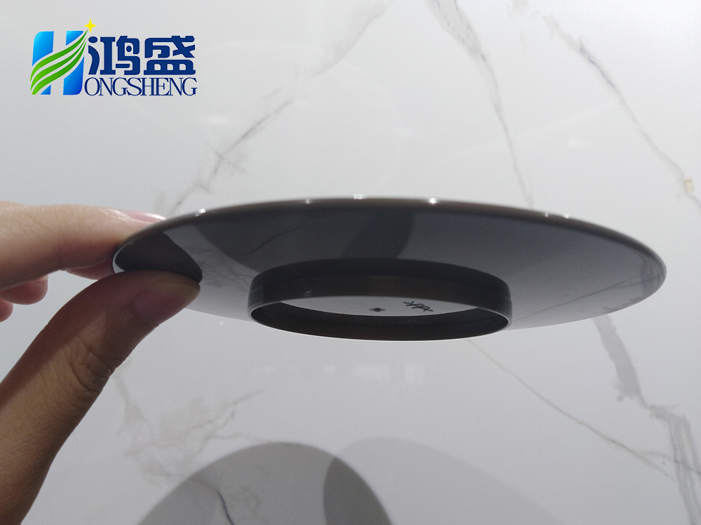 這款圓托面板采用了我們編號為【P60E610】的鐵灰色免噴涂材料注塑而成,鐵灰色是一個偏中性的顏色,是除黑白色以外較百搭耐看的顏色,也是比較不分年齡群體和性別的顏色之一,應用在小家電上外觀高光絢閃,中性百搭,且免噴涂自帶的不掉漆、里外如一、綠色環保的屬性也為它加了不少分,因此這款材料也是我們鴻盛較受歡迎的顏色之一。