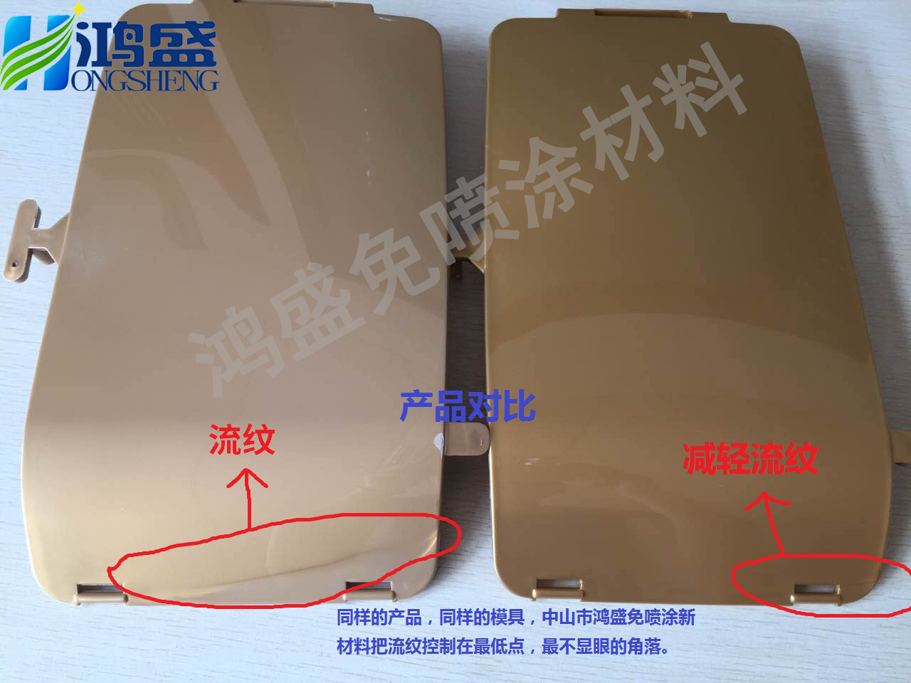 通過(guò)對(duì)核心原料技術(shù)的掌控,鴻盛成功突破了“流痕”技術(shù)瓶頸,并大幅度減輕熔接線,達(dá)到無(wú)流痕效果。