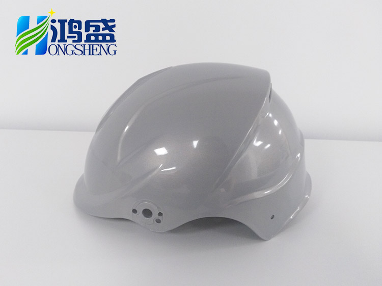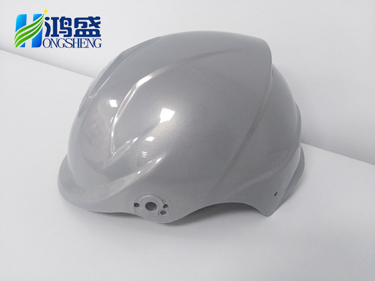 一家專注安全帽生產的企業,在環保經濟發展的大風口下,他們同樣將目光放在尋求產品品質高、健康環保的發展方向上來。他們之前找過好幾家免噴涂廠家生產,但出來的效果都不理想。由于此款頭盔孔洞較多,容易造成流紋,需要從進澆口設計、結構設計原料配方等多方面著手。鴻盛新材根據客戶樣板及理想顏色效果,為客戶定制了一款適合其產品的銀白色免噴涂塑料【編號:ABS-S6002】