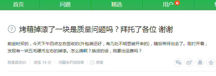不過黑色解決了耐臟的問題,還有一個讓買家憂慮的問題卻是顏色不能解決的,那就是產品外殼的掉漆問題,有些買家甚至反應產品剛買來就存在掉漆問題。(下面截圖來自百度知道)