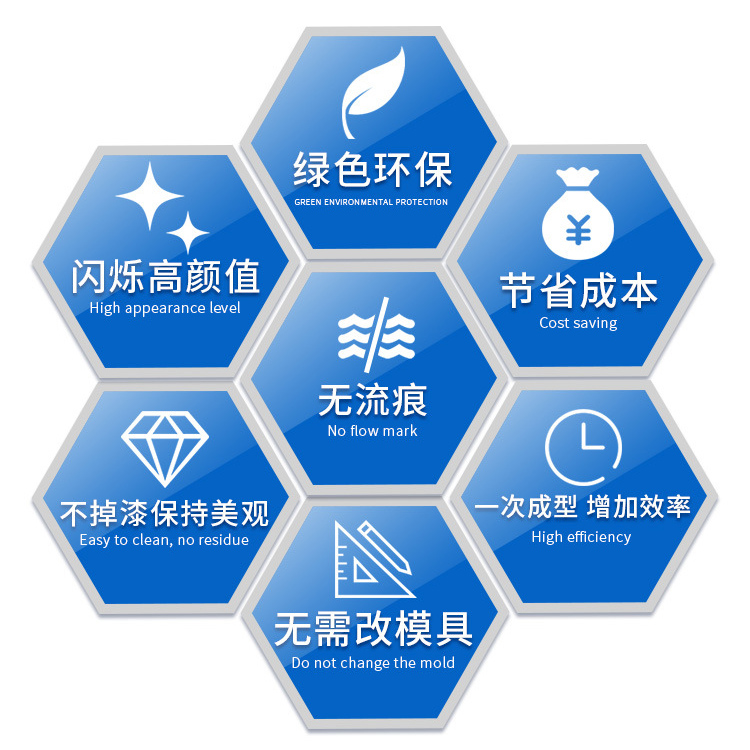 同時,該顏料為多面體結構,在熔體中能夠多角度反射和折射,賦予塑料產品獨特的立體閃爍效果,質感細膩、檔次高、色澤豐富。
