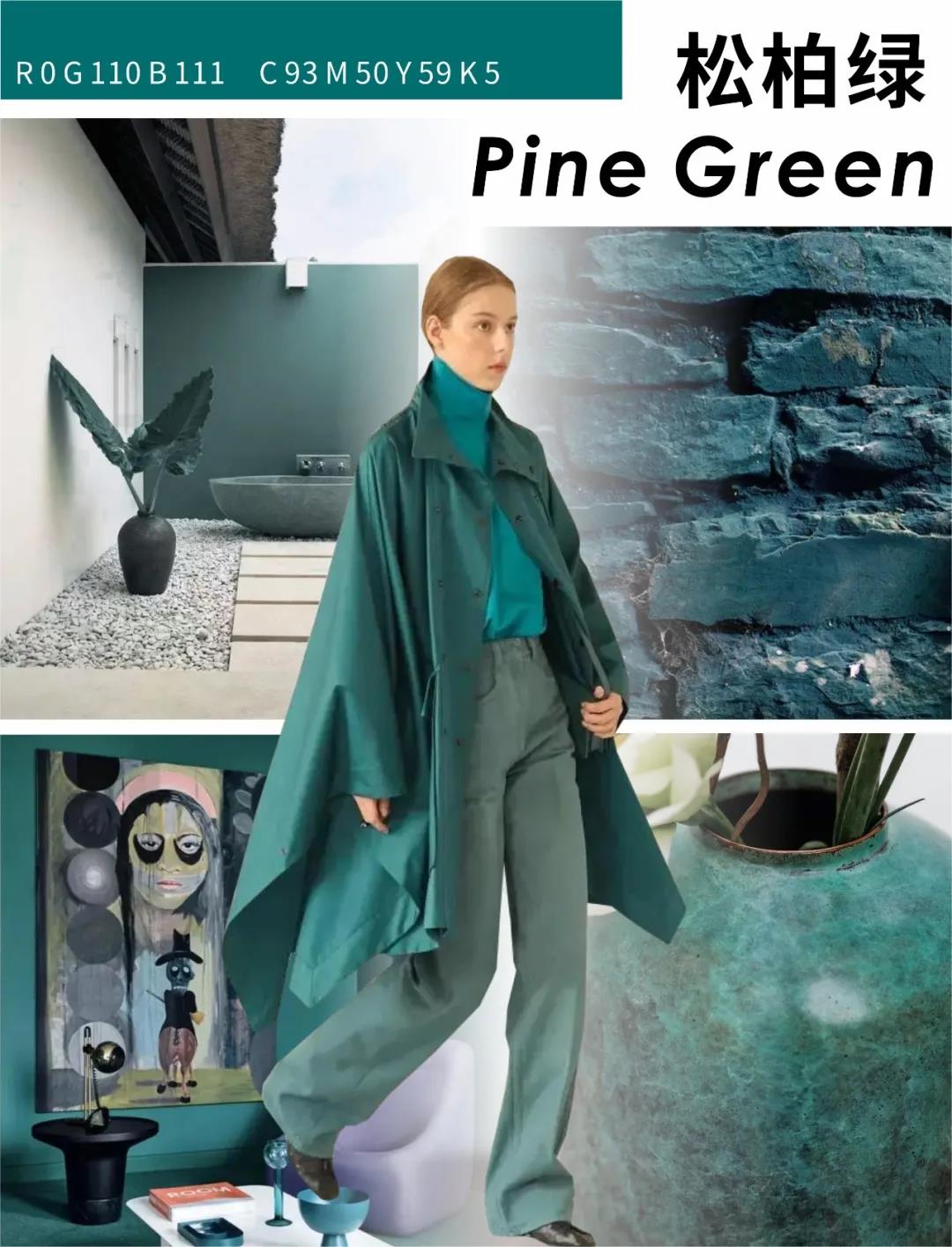 介于青色與綠色之間的松柏綠,是松柏葉的綠色,是深沉而旺盛的顏色,它的存在讓整個色彩變得低調而飛揚,用其裝飾室內,可以營造出復古的低調感。