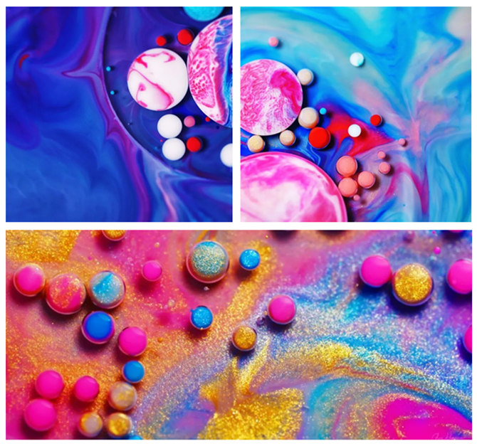 俄羅斯視覺藝術家魯斯蘭·哈薩諾夫是名副其實的色彩大師,他很多顏料與色彩組合的創意作品,以各種繽紛的“色漿”在外力的驅使下相互碰撞融合,變化多端,形成難得一見的絕美鏡頭,仿佛梵高的星空發生了更迭,又仿佛宇宙遙遠的星系在運轉。