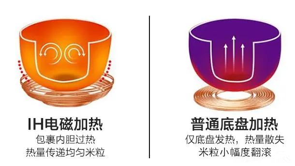 IH電飯煲:由多種復合材質制作而成帶涂層的合金內膽或者精鐵內膽,比一般內膽更加厚重,導熱及受熱能力更好。