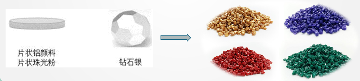 第一種方案指:采用特殊工藝將球形鋁顆粒加工成規整的鉆石銀多面反光體,顛覆傳統片狀顏料的形態,從而降低了客戶在使用過程中對顏料片定向的要求,實現制件無流痕。