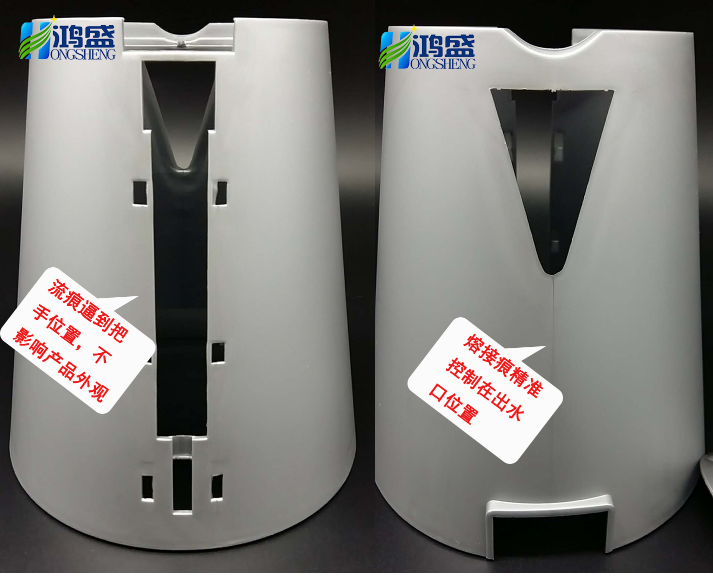 5、通過結構上的設計把熔接痕流痕逼到不明顯處(如下邊案例)