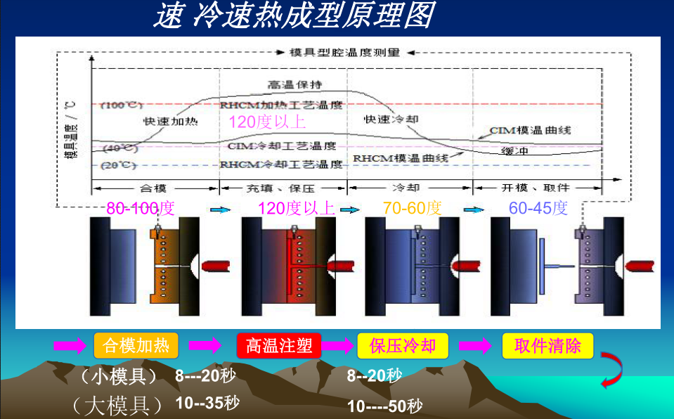 模具溫度方面,較高的模具溫度直接影響最終制品的表面光亮度、熔接線及其強度等。結合急冷急熱設備的模具溫度可以增加材料流動性,獲得較高的結合線強度,使其耐熱性和耐化學品性更好,同時提高熔膠對模具表面的復制性,提高制品光澤度和特殊色彩效果。