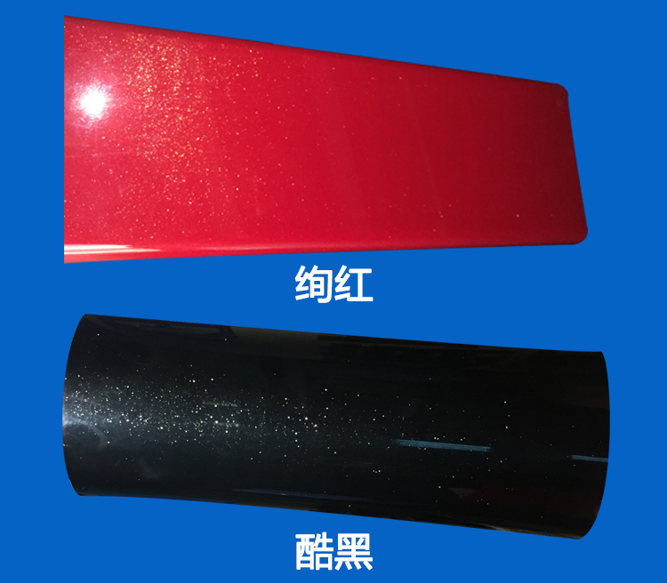 我們做了紅、黑兩種不同的仿烤漆ABS免噴涂塑料,并與噴漆的材料進行了比對,如果不是事先知道根本就無法分辨出,哪一塊才是噴漆塑料。所以,我們的仿烤漆ABS免噴涂塑料,在外觀上是完全實現了仿烤漆的目的的。