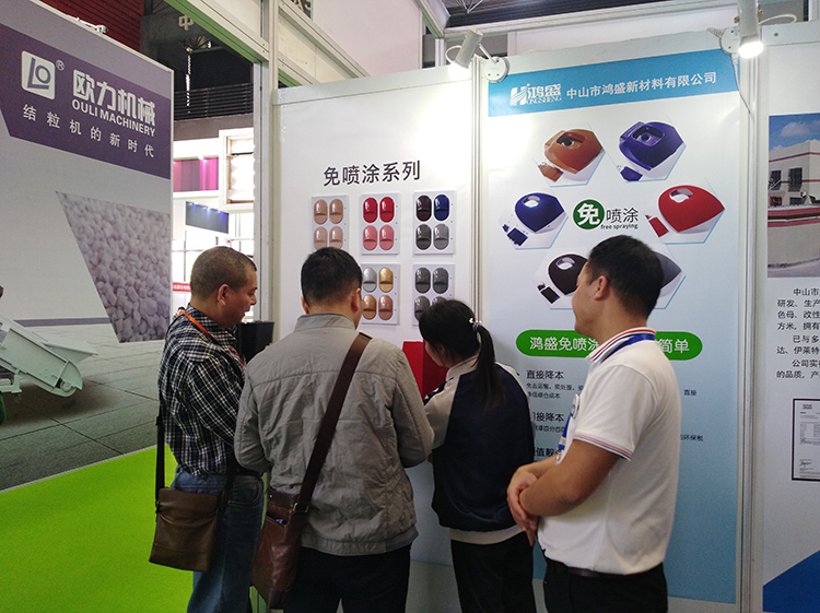 鴻盛新材的展位也吸引了各行各業的客戶前來詢問,有小家電行業的、智能家居行業的、玩具行業的、3C電子行業的、汽配行業的、日用品行業的等等,其中也有一些專程到訪的客戶。