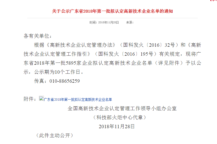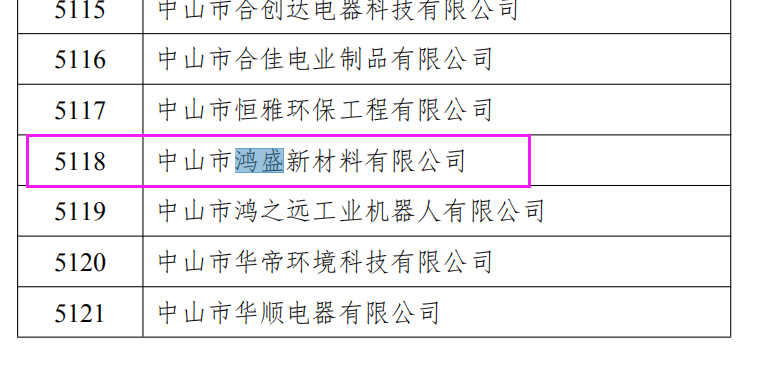 好消息!廣東省2018年新一批擬認定高新技術企業名單在今天(11月28日)出來了,中山市鴻盛新材料有限公司已經通過高新技術企業認定了!
