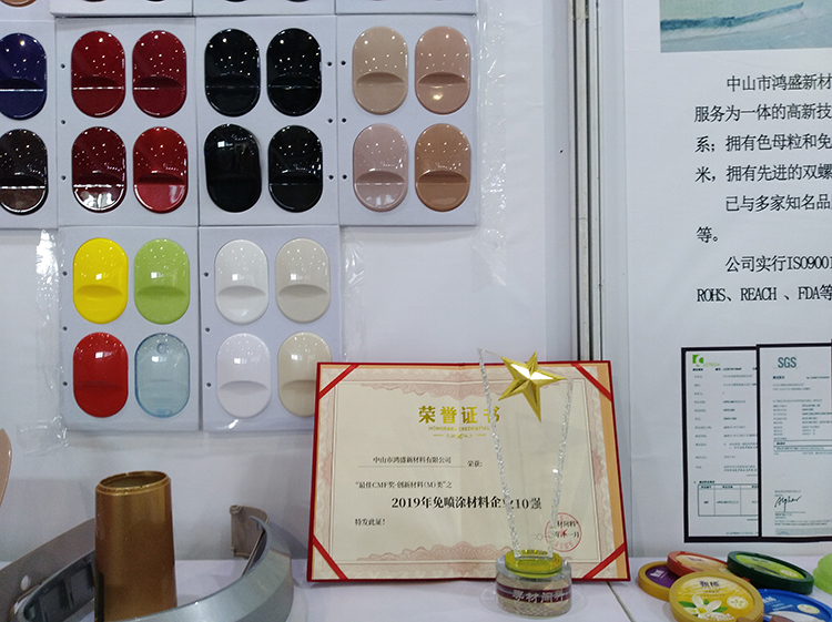 上一周,鴻盛新材在廣州保利世貿博覽館參加了2019第三屆國際新材料新工藝及色彩(簡稱CMF)展覽會。這是鴻盛第二次攜免噴涂美學塑料參加CMF展,對比上一年,這一次的展會有帶給我們相同的感受,也有帶給我們不同的感受。