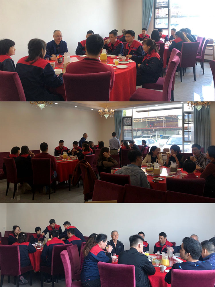 出發吃飯前,先來一張集體照,鴻盛新材的小伙伴們都統一著裝,齊齊整整,高舉習主席的2020年新年賀詞:“只爭朝夕,不負韶華”。提醒著自己在往后的日子要更加珍惜時光,珍惜和同事一同朝夕拼搏的日子,不要辜負光陰和自己。