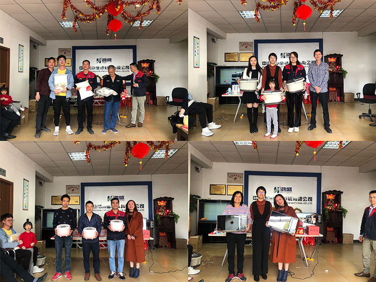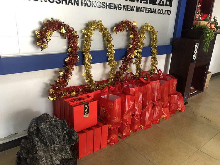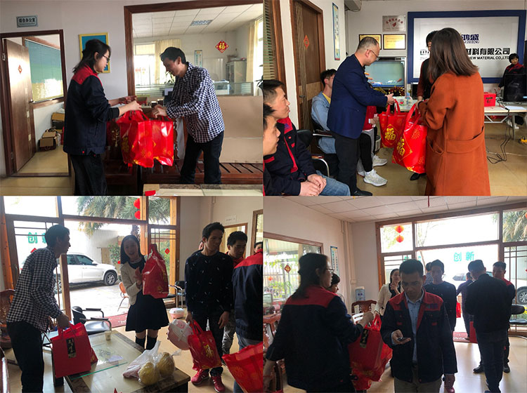 最后的最后,就到了人人有份的發年貨環節了,大家人手一份紅紅的年禮,歡歡喜喜回家過新年,養精蓄銳,明年繼續加油沖沖沖!小編也在此提前祝福鴻盛新材所有的小伙伴新年快樂!