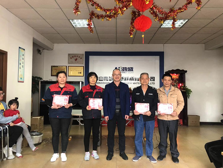 今年我們有三個同事獲得了全勤獎,還有一個同事獲得了優秀獎,感謝他們一整年來的辛勤勞作,為我們鴻盛全體人員提供了一個很好的學習榜樣!