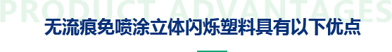 無需修改模具,注塑工藝簡單,直接注塑后呈現出多次立體閃爍效果;無需表面涂裝即可獲得類似噴漆的外觀感